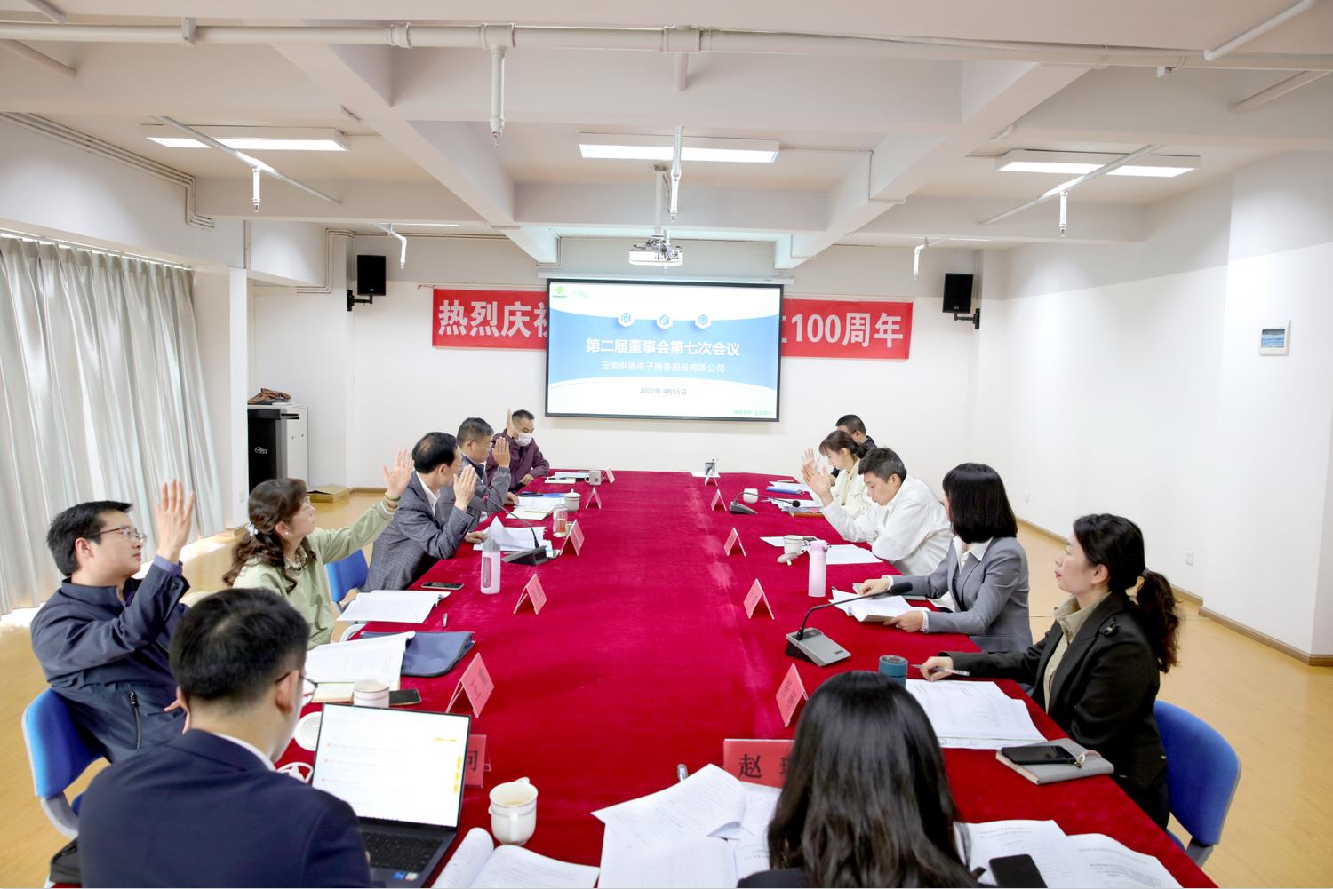 2022年4月15日,金年金字招牌诚信至上电子商务股份有限公司第二届董事会第七次会议和第二届监事会第八次会议在昆明召开。会议分别审议通过了《公司董事会2021年工作报告》、《公司监事会2021年工作报告》、《公司2021年工作报告(送审稿)》、《公司2021年度财务执行情况与2022年财务预算草案的报告》、《公司2022年度员工薪酬(工资总额)预算的报告》、《公司换届选举暨提名第三届董事会董事、监事会监事候选人的报告》、《公司2021年度不予分红的报告》等十项议案;讨论研究了公司五项专题报告。